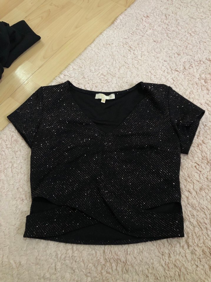 Simli V Yaka Kısa Kollu Kadın Bluz