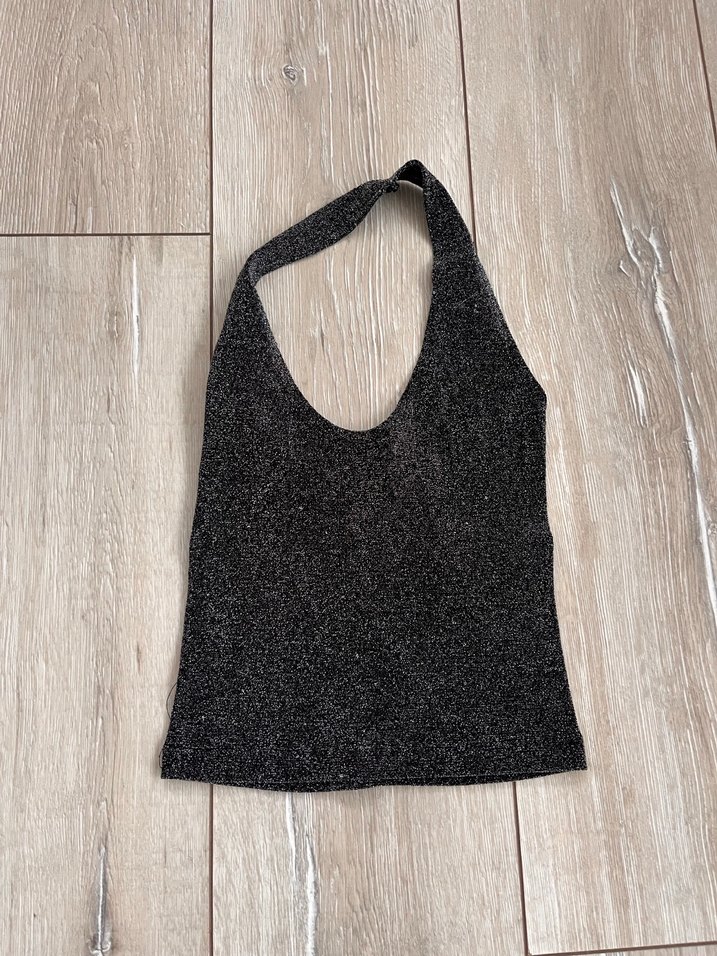 Siyah simli kumaştan ışıl ışıl bluz sırtı hafif açık boyundan askılı 2 kez falan giyildi çok şık bir ürün teyzemin dolabından y2k bir parça