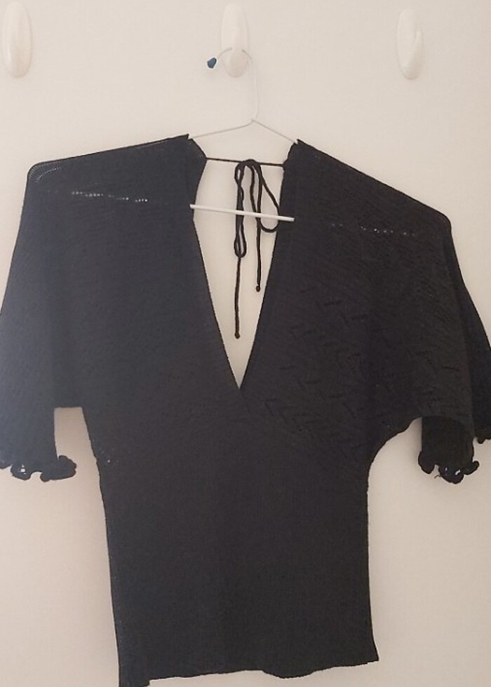 Simli yarasa kol detaylı triko bluz M beden triko olduğu için esnektir