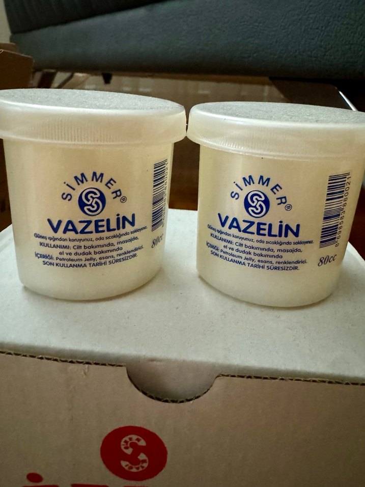 Simmer Vazelin, 80 ml kaplarda cilt bakımı ve masaj için uygundur. İçeriğinde petrolatum ve mineral yağ bulunur, pürüzsüz kullanım sağlar. Son kullanma tarihi yoktur.