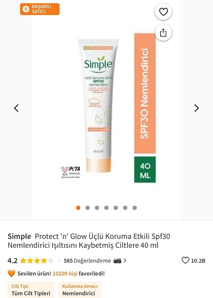 Simple üçlü koruma etkili SPF30 nemlendirici. 40ml. Unilever. İngiltere markası. Cruelty free belgeli. Bize hediye geldi. Kutunun biri kapalı diğeri ne olduğuna bakılmak için açıldı. Hiç kullanılmadı. Satış fiyatı 250 trendyolda