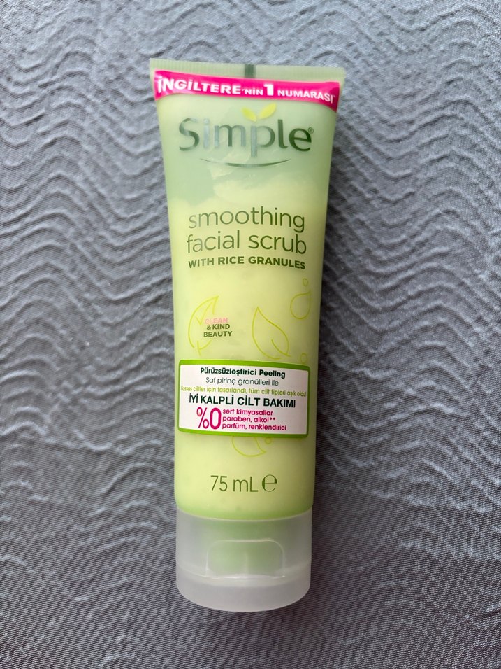Simple markasının pirinç taneleri içeren yüz peelingi, nazikçe cildi temizler ve bakım yapar. 75 ml içerir. Az kullanıldı