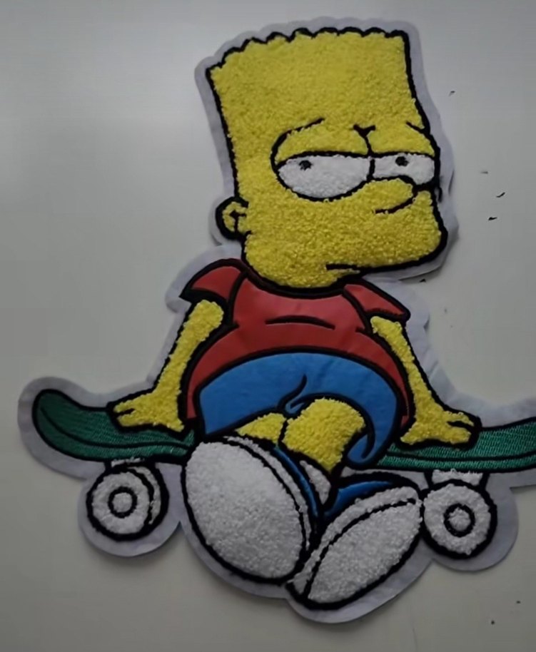 Simpson punch ve deri den oluşan dikme aplik 26x23 cm büyük boy Kaykay üzerinde oturan, detaylı ve renkli tasarıma sahip aksiyon figürü.