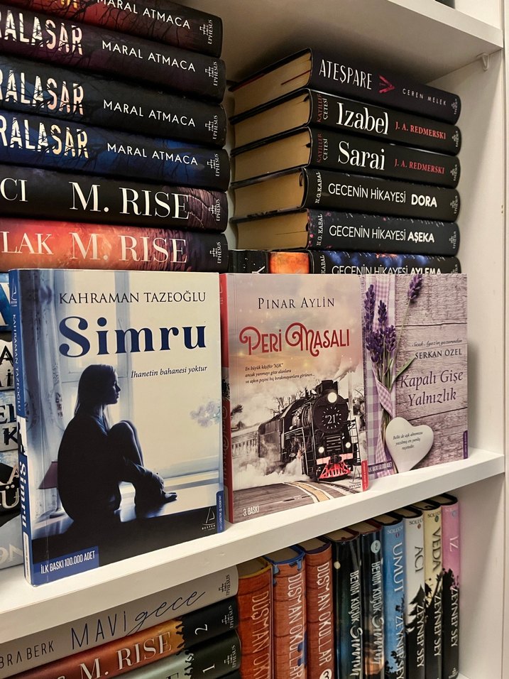 Simru, Peri Masalı ve Kapalı Gişe Yalnızlık romanlarından oluşan bir koleksiyon, kitaplıkta yer alıyor. Çeşitli hikayeler ve duygular anlatılıyor.