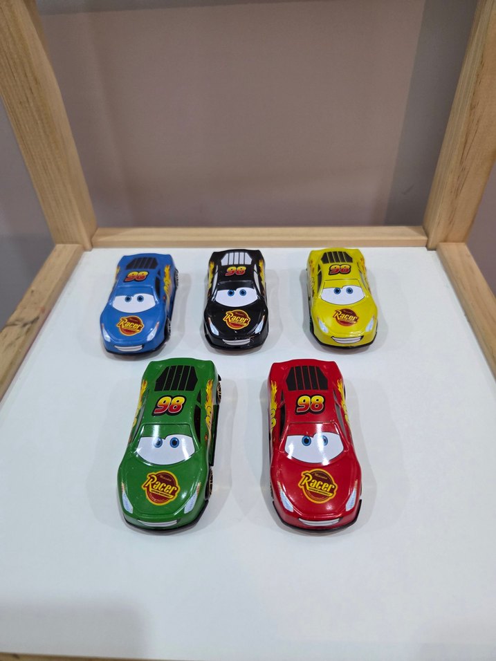 Canlı renklerde ve eğlenceli tasarımlı oyuncak yarış arabaları seti, hayal gücünü destekler. Plastik malzemedir.
