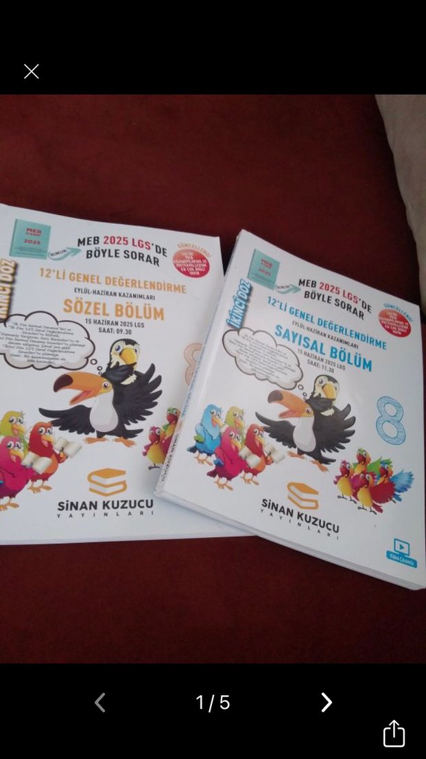 Sinan Kuzucu tarafından hazırlanan LGS 2025 için Sözel ve Sayısal Bölüm 12'li genel değerlendirme kitap seti. Güncel fiyatı 800 TL,6 denemesi çözülü olduğu icin uyguna satıyorum.