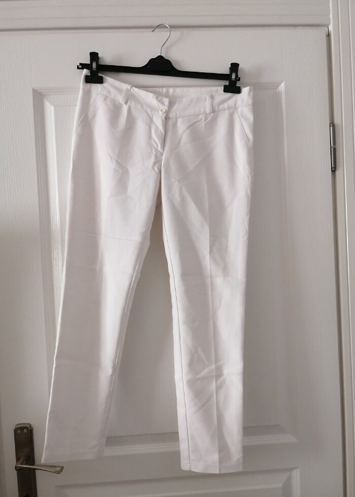40 beden beyaz kumaş pantolon.. Dar kalıptır.. Sadece 1 defa kullanılmıştır. Hiçbir kusuru yoktur.. Temiz üründür.