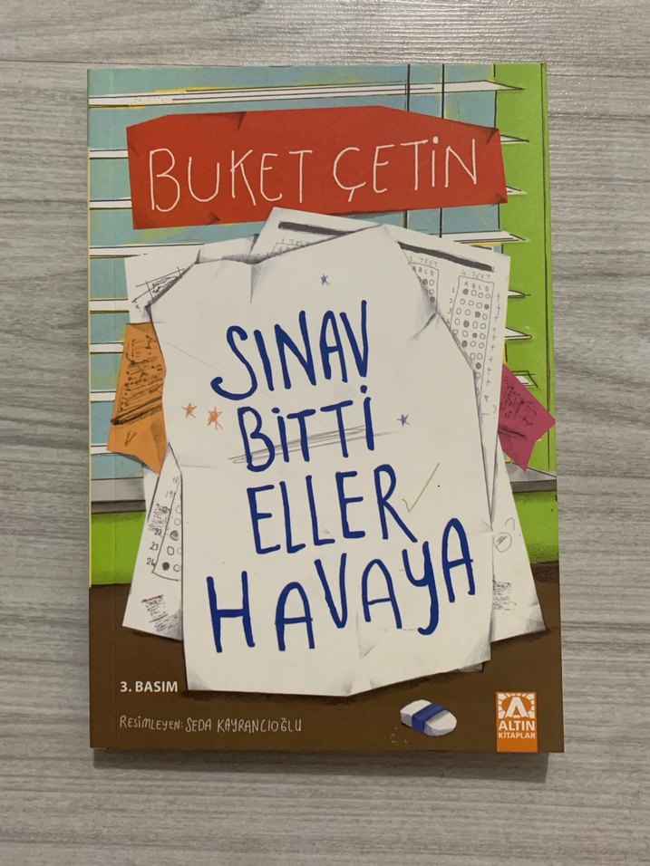 Buket Çetin'in "Sınav Bitti Eller Havaya" kitabı, Seda Keyfancıoğlu'nun çizimleriyle Altın Kitaplar tarafından yayımlanmıştır.
