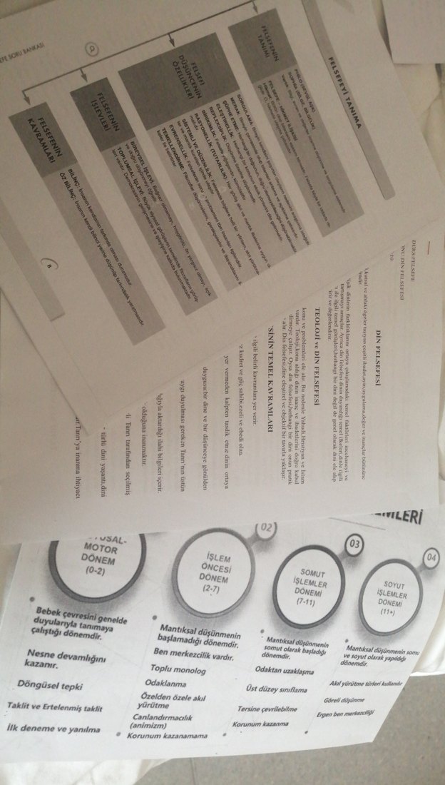 Motor gelişim evreleri ve bilişsel süreçleri içeren sınav hazırlık kitabı sayfaları. Nesne devamlılığı, mantıksal düşünme ve döngüsel tepkiler gibi konular yer alıyor.