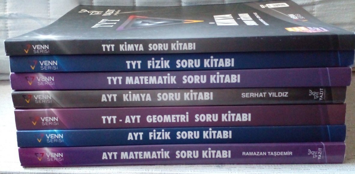 TYT ve AYT sınavları için Venn yayınlarının oluşturduğu kimya, fizik, matematik ve geometri soru kitaplarından oluşan set. Bazısında çözülmüş yerler mevcut. Toplam fiyatıdır.