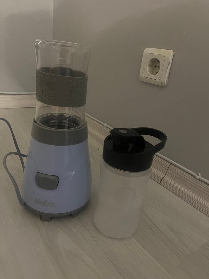 Sinbo beyaz ve gri blender, kolay karıştırma ve taşıma için çıkarılabilir şişeyle birlikte. Smoothie ve shake için uygundur.