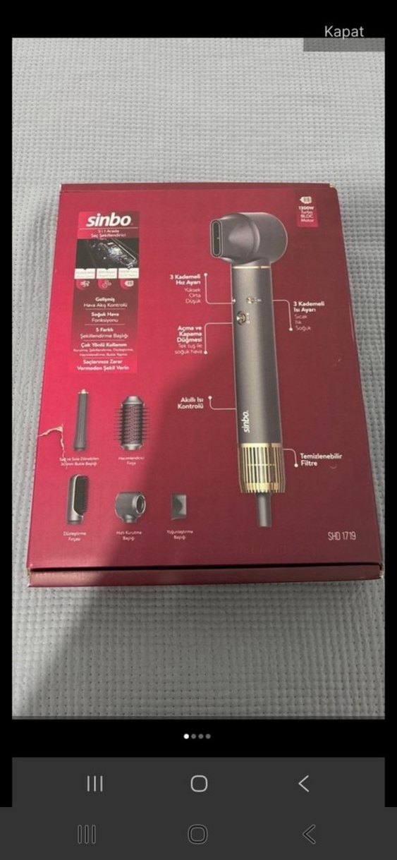 Sinbo SH01719 bordo saç şekillendirici, 3 kademeli ısı ayarı, çıkarılabilir filtre ve çeşitli şekillendirici aparatlarla birlikte gelir. ♀️