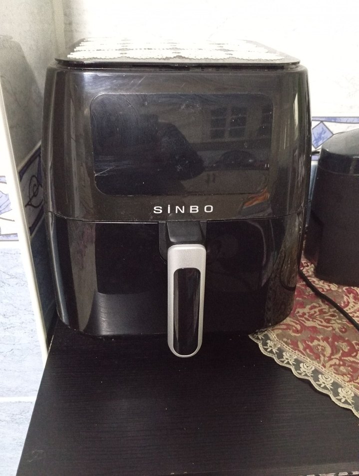 SINBO marka siyah havalı fritöz, ön kolu ile kolay kullanım sağlar. Az yağ ile pratik ve sağlıklı kızartma yapar.