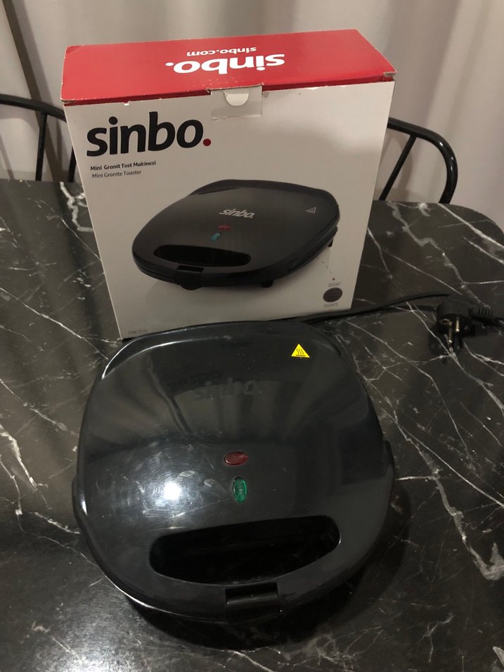 Sinbo siyah mini tost makinesi, gösterge ışıkları ve kolay kullanım için kontrol düğmeli kompakt tasarıma sahiptir. Hızlı atıştırmalıklar için uygundur.