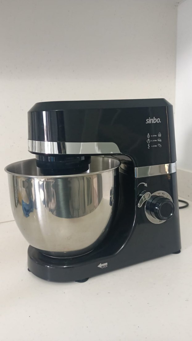 Sinbo siyah mutfak mikseri, paslanmaz çelik kase ve çeşitli hız ayarlarıyla farklı karıştırma işlemleri için uygundur.