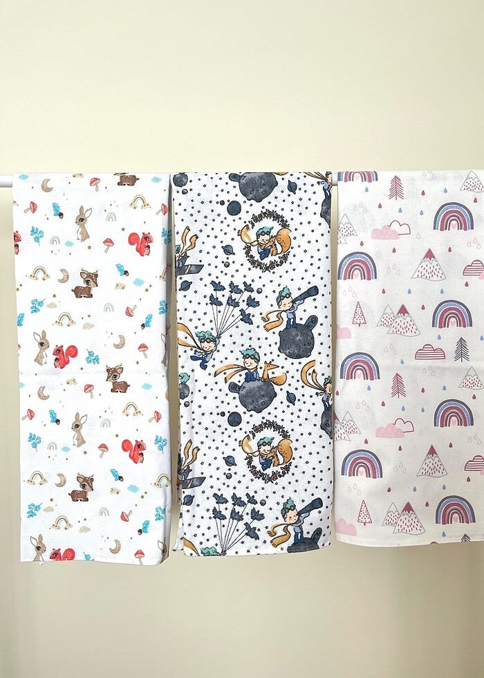 sincap küçük prens ve mor gökkuşağı desenli pazen battaniye 100* 120 ölçüsü üçlü set halinde alabilirsiniz.