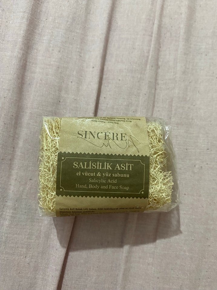 Salisilik asit içeren Sincere sabun, el, vücut ve yüz için nazikçe temizleyip peeling yapar.