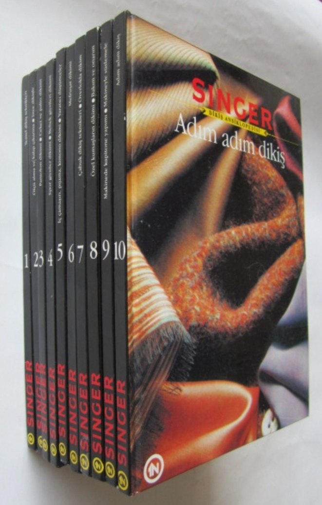"SINGER Adım Adım Dikiş" adıyla 10 kitaptan oluşan set, dikiş teknikleri hakkında detaylı bilgiler sunar. Her kitap farklı konuları adım adım anlatır.