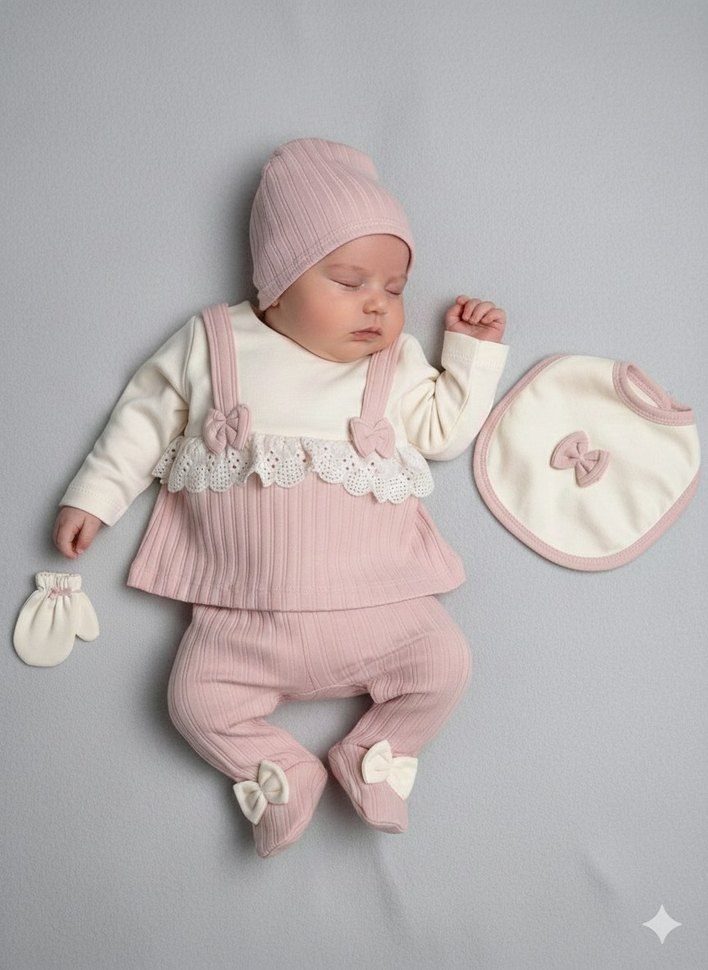SINIRLI STOK: Fiyonk Detaylı Pudra Bebek Seti