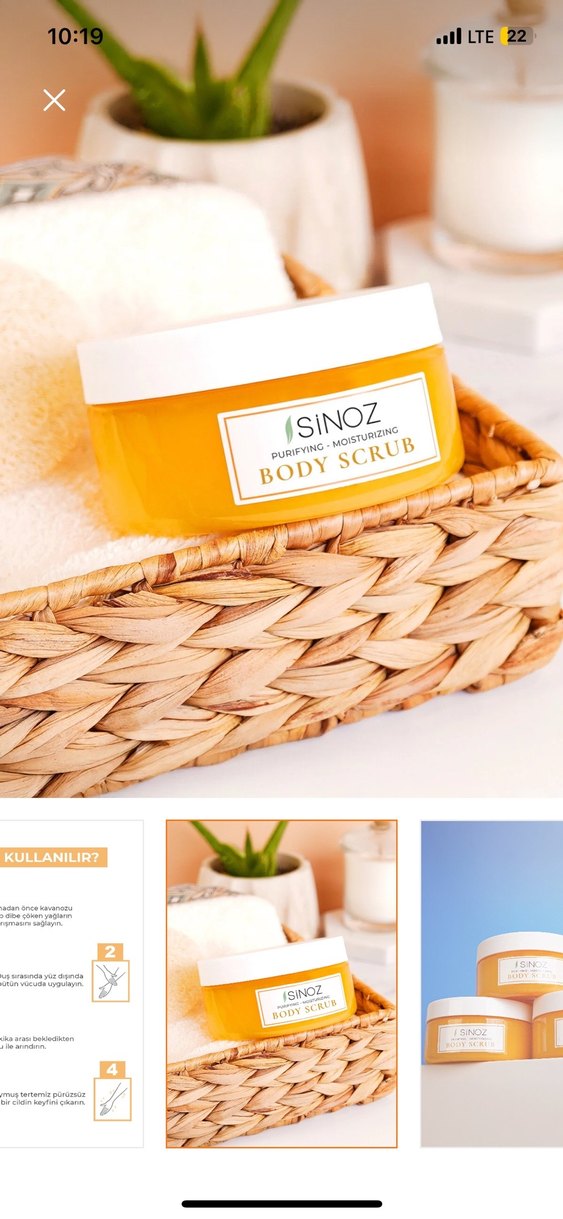 SİNOZ vücut peelingi, cildi arındırır ve nemlendirir. Nazikçe peeling yapar, cildi yumuşak ve nemli tutar. İki kutu almıştım birini açtım kullanamadım, diğerini satıyorum.