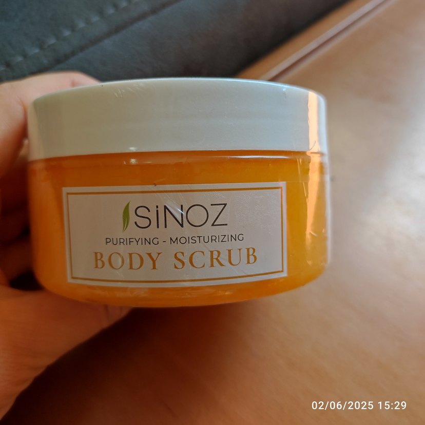 SİNOZ arındırıcı ve nemlendirici vücut peelingi, cildi nazikçe temizleyip nemlendirir. Sıfır üründür. Koruma bandı üzerindedir.