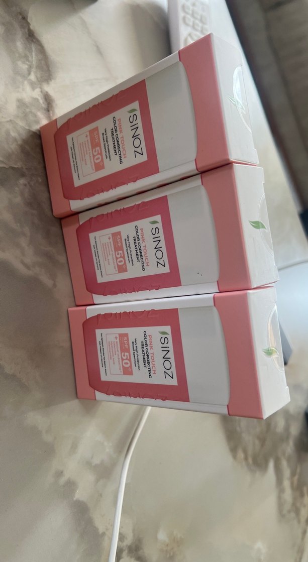 Sinoz SPF 50 güneş koruyucu krem, cildi güneşin zararlı etkilerinden korur ve yaşlanmayı önlemeye yardımcı olur. Üçlü kutu seti olarak sunulur. ☀️