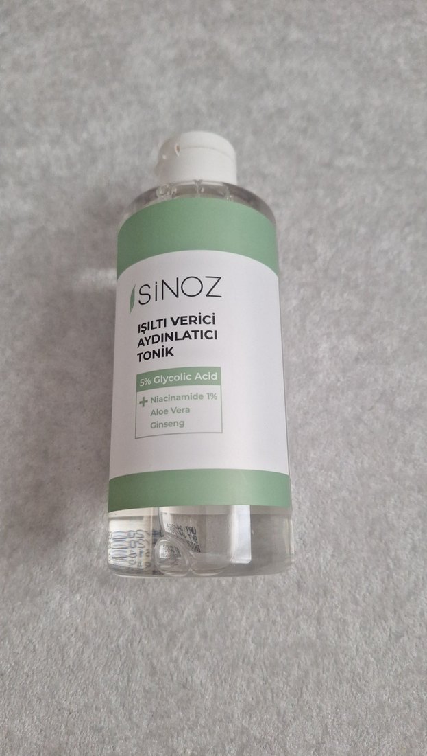 Sinoz 5% glikolik asit, niasinamid, aloe vera ve ginseng içeren aydınlatıcı tonik, cildi canlandırır ve parlaklık verir. ✨