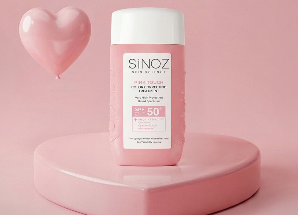 Sinoz Pink Touch, çok yüksek SPF 50 geniş spektrum koruma ve renk düzeltici bakım sunar. İçeriğinde parlak oleaktif, kalsiyum, hyaluronik asit ve niasinamid bulunur.