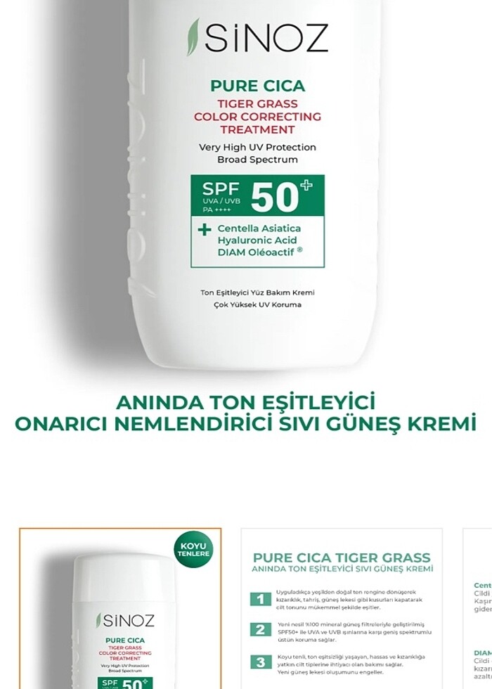 Sinoz renkli cilt tonu eşitleyici güneş kremi