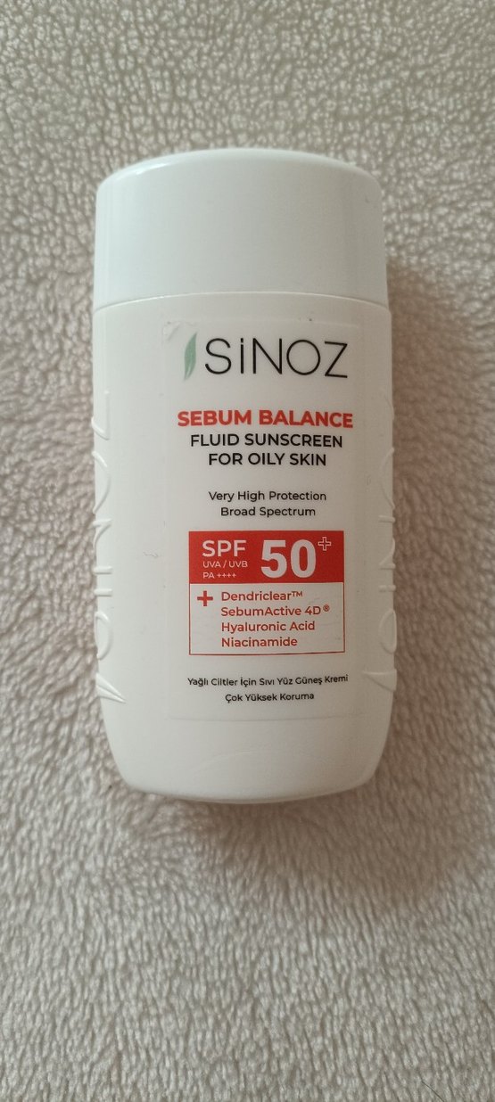 SiNOZ Sebum Balance sıvı güneş kremi, yağlı ciltler için SPF 50+ çok yüksek koruma sağlar. Niacinamide ve hyaluronik asit içerir, sebum dengesini destekler ve cildi nemlendirir. sadece bir kere kullandım kutusu yok