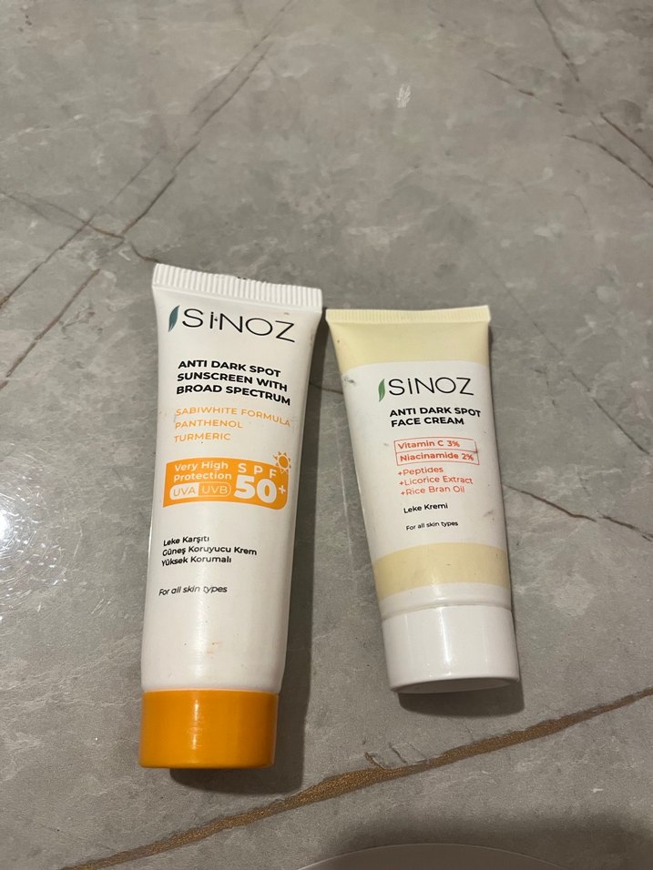 SiNOZ leke karşıtı güneş kremi, panthenol ve zerdeçal içerir. Çok yüksek SPF 50+ koruma sağlar ve tüm cilt tiplerine uygundur. ☀️