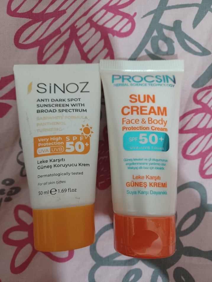 procsin hiç açılmamıştır sinozun yarısı kullanılmıştır çoğu duruyor yeni alınmış ürünler fazla var diye satıyorum SiNOZ ve PROCSIN, yüz ve vücut için geniş spektrumlu SPF 50+ güneş koruyucu kremler, leke karşıtı özellikli ve suya dayanıklı. Tüm cilt tipleri için dermatolojik olarak test edilmiştir.