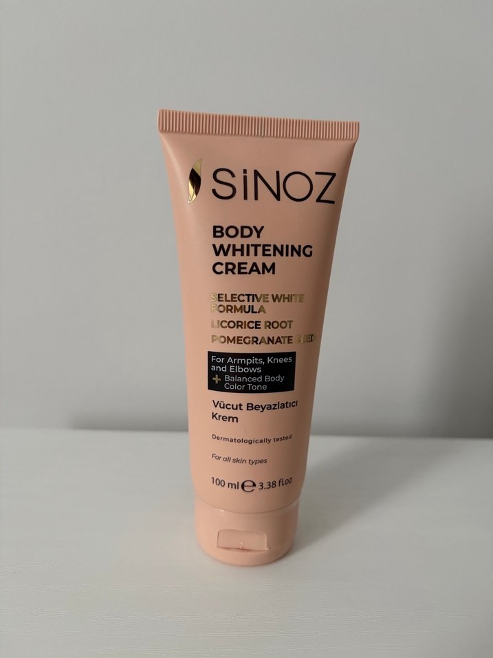 Sadece 1 kez deneme amaçlı kullandım. İhtiyaç fazlası. Sinoz Vücut Beyazlatıcı Krem, koltuk altı, diz ve dirseklerde cilt tonunu dengelemeye yardımcı olur. Meyan kökü ve nar özlü, dermatolojik olarak test edilmiştir.
