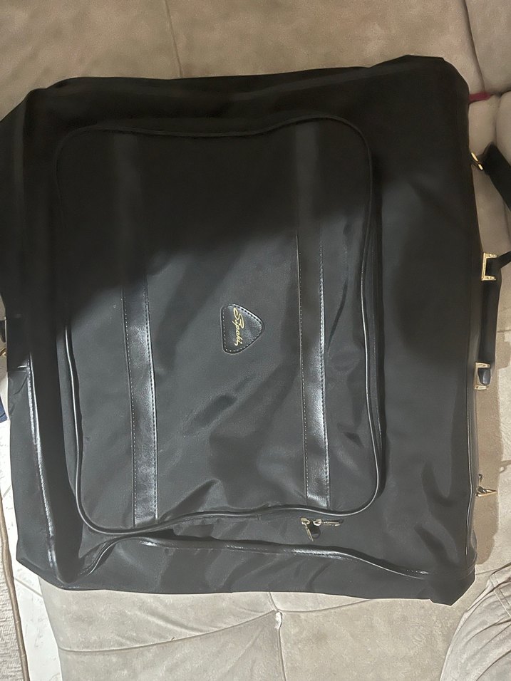 Klasik iş ve sokak tarzına uygun, fermuarlı ve desensiz siyah elbise valizi. Su geçirmez özelliği vardır.