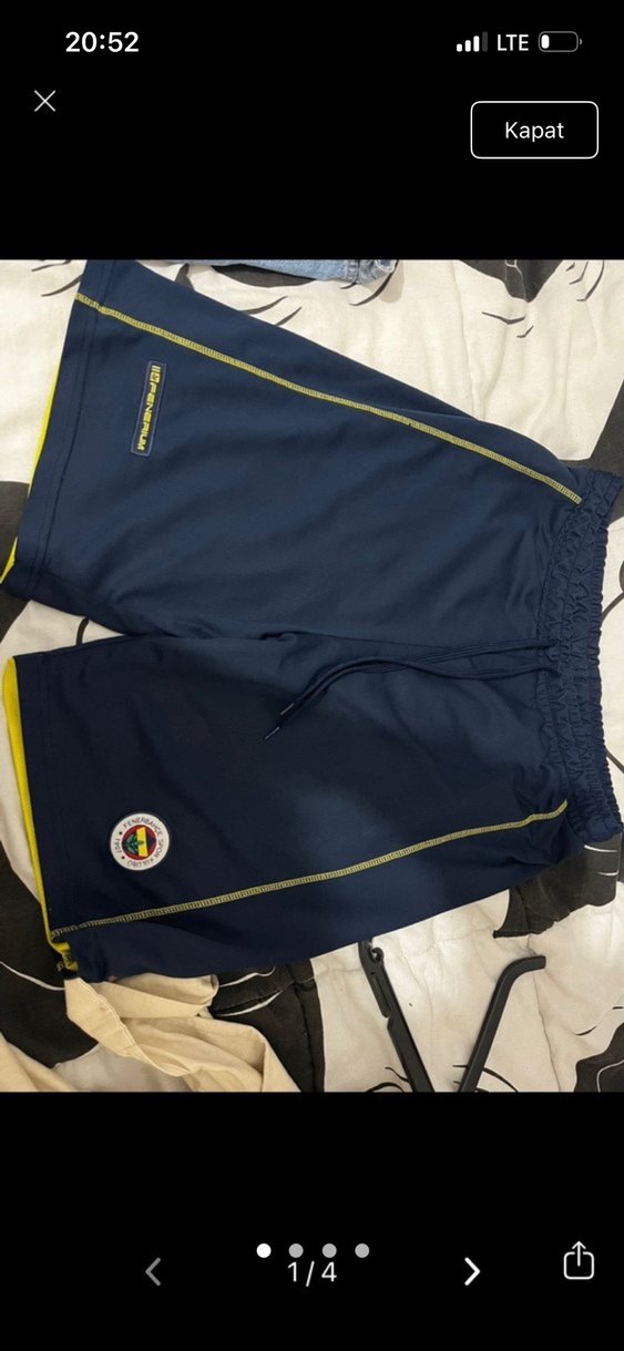 Lacivert, baskılı logo ve sarı dikiş detaylı, ayarlanabilir cırt cırtlı, rahat ve sıcak kumaştan yapılmış erkek mini spor şortu.
