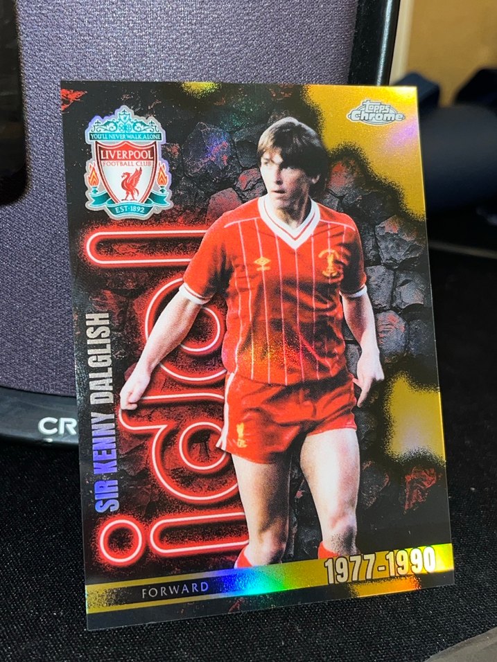 1977-1990 yılları arasında Liverpool forması giymiş Sir Henry Dalglish'in futbol kartı. Koyu ve canlı renklerle, forvet pozisyonunu vurgular. ⚽