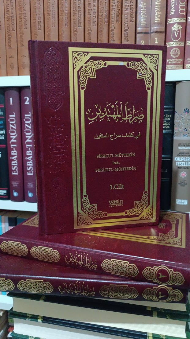 Yasin Yayınları tarafından basılmış, altın varak işlemeli kapaklı Sıratul-Mohtedin kitabının