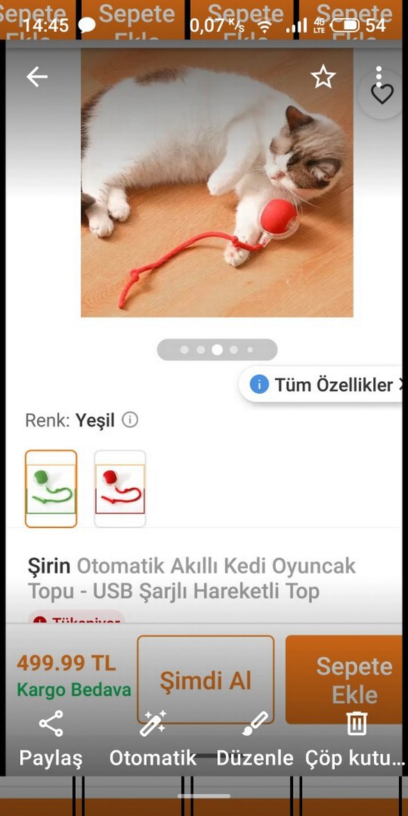 USB şarjlı hareketli topu ile otomatik çalışan akıllı kedi oyuncağı. kırmızı renk