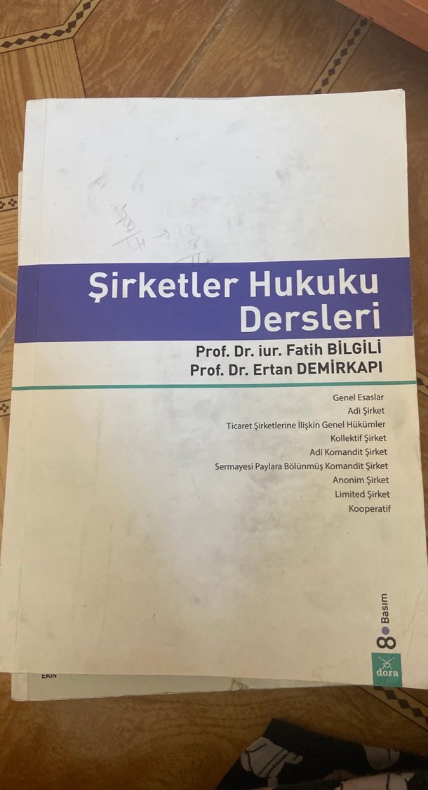 Genel esaslar ve farklı şirket türlerini kapsayan, Prof. Dr. Fatih Bilgili ve Prof. Dr. Ertan Demirkapı'nın Şirketler Hukuku kitabı. Kitabım çizilidir