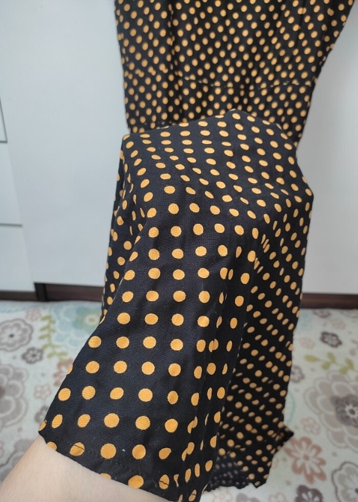Serin kumaş kendim diktim sorunsuzdur 1 kere kullanıldı M-L beden. İki koltuk altı arası 42 cm. Bel 34 cm. Elbise boyu omuzdan itibaren 105 cm
