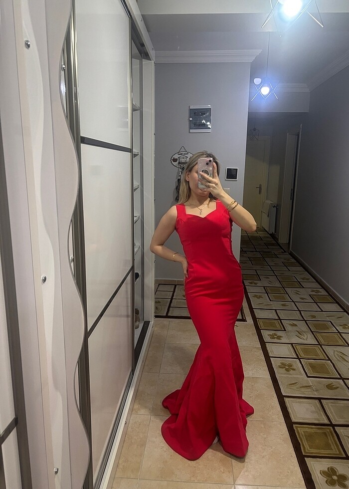 Sırt dekolteli kırmızı abiye