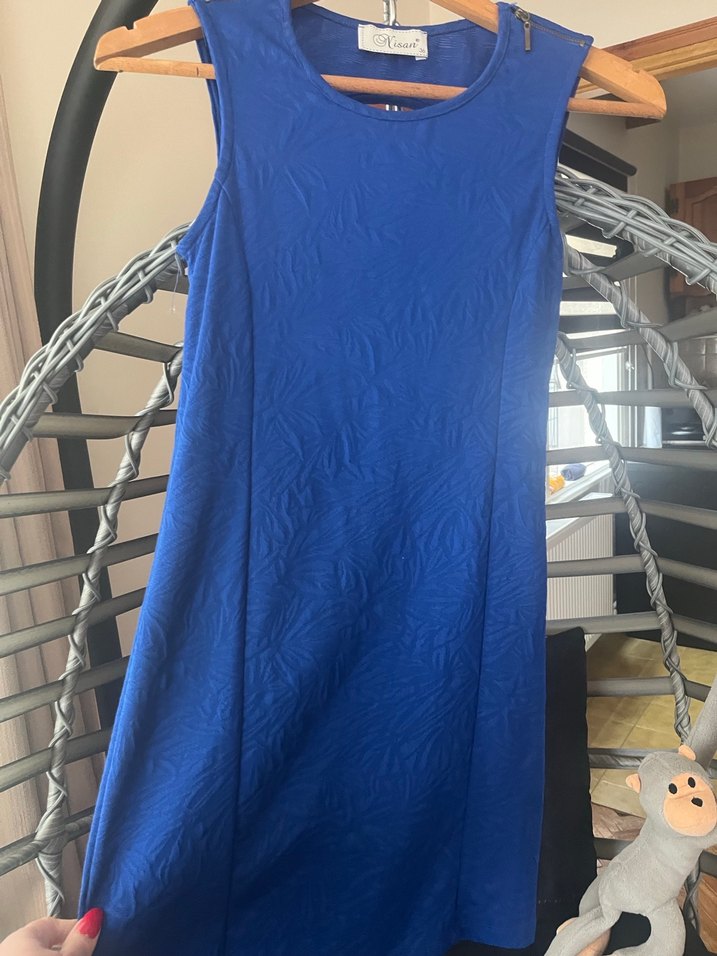 Kolsuz, mavi mini elbise ve hafif dokusuyla şık ve sade bir görünüm sunar. Parti Konseptine Uygundur