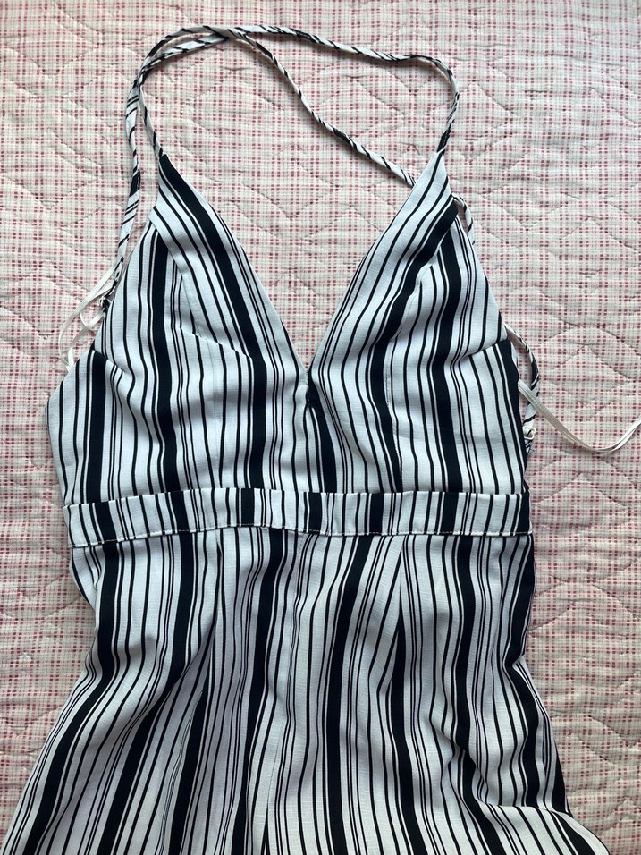 gögüs ve sırt dekolteli cizgili pantolon tulum