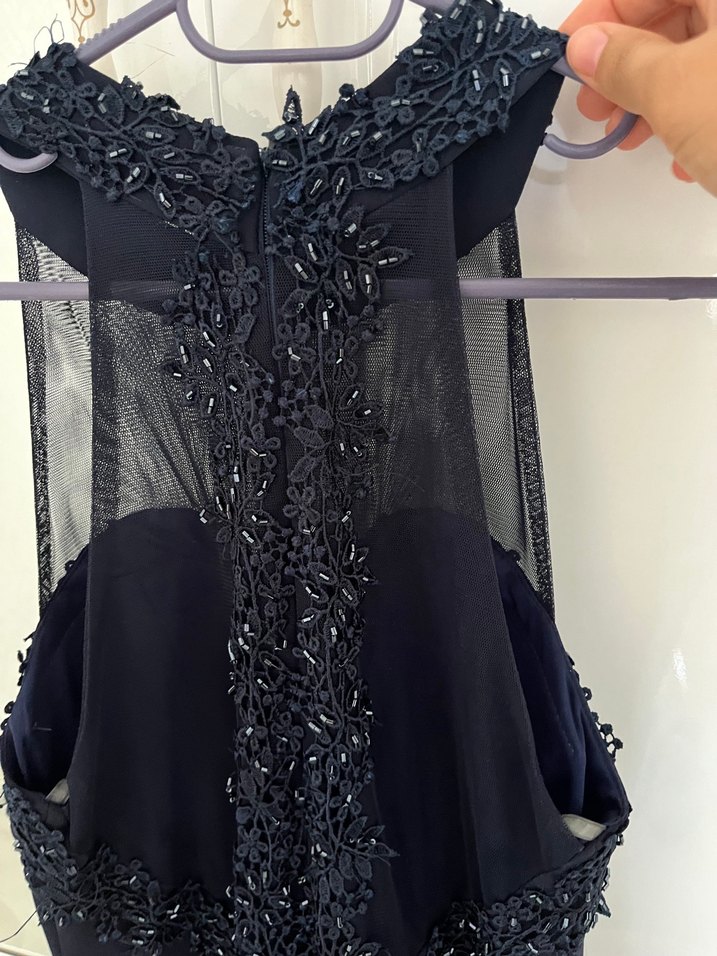Sırt dekoltesi işlemeli şık balık abiye