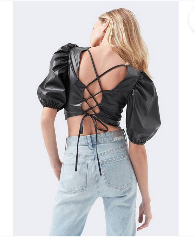 Balon kollu Sırt kısmı ipli Xs beden deri bluz Etiketlidir.
