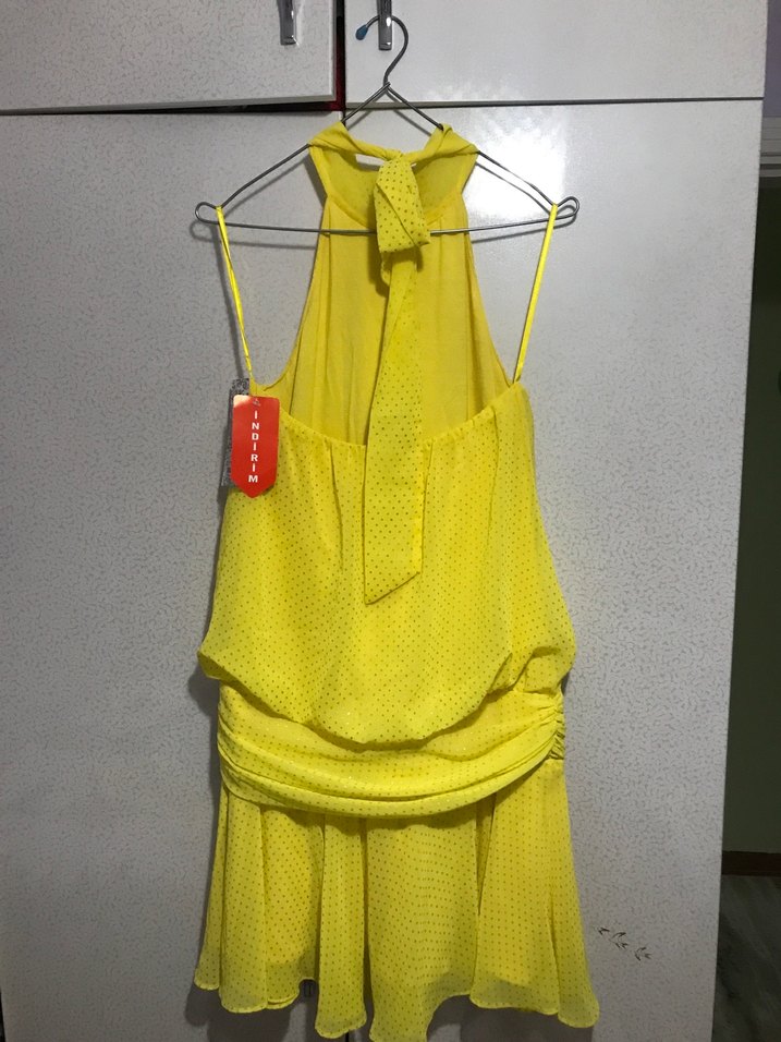 Sırtı açık sarı elbise