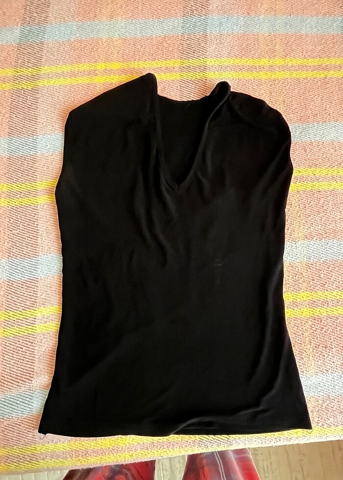 Sorunsuz. Yumuşak bi kumaşı var. Sırtında parlak bir detay. Omuz kısımları açık.S-M bedene uygun