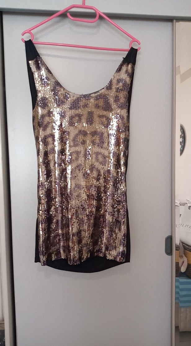 onu payetli sırti açık ve zincir detaylı mini elbise