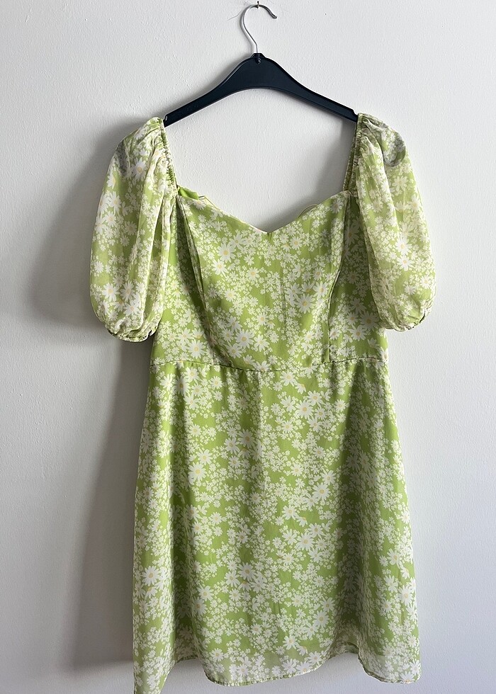 hasarsız sıfır ürün 40 beden çok tatlı a kesim şifon elbise bana sırt bağcığı gelmedi o yüzden tuhafiyeden ip alıp kendim yaptım çiçek rengine uygun güncel fiyat 336₺ makul teklifleri kabul ediyorum