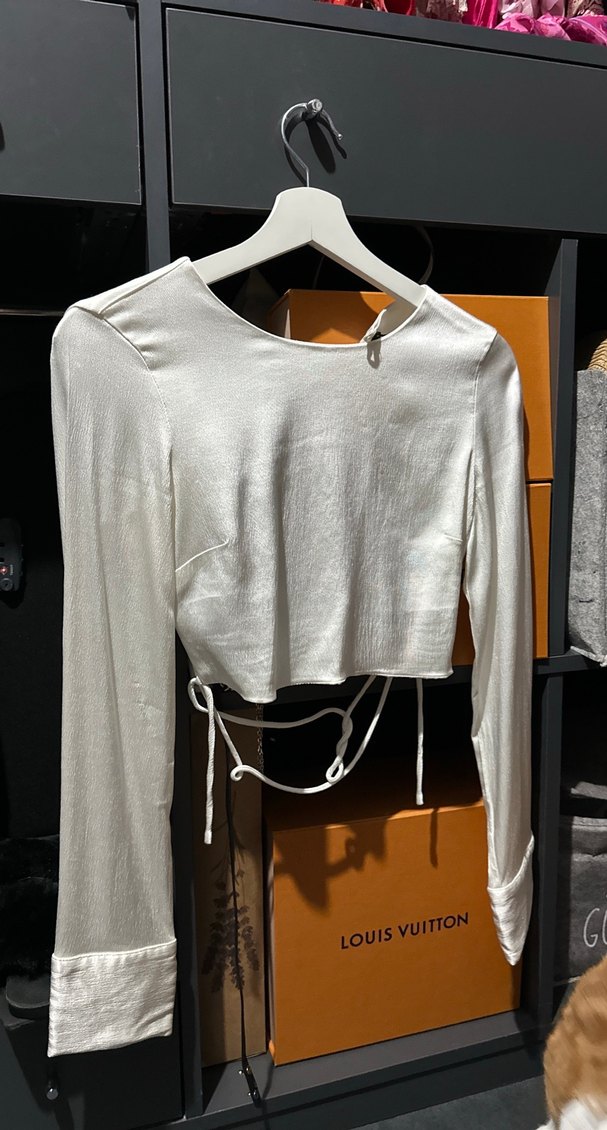 Sırtı komple açık ZARA saten crop bluz